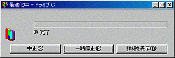 デフラグとはハードディスクの中を整理する機能である。 ハードディスクの読み書きを速くするのが目的だが、同時にハードディスクのエラーチェックも行う。 [スタート]をクリックし、[プログラム]をポイント、[アクセサリ]をポイント、[システムツール]をポイント、[デフラグ]をクリックする。 [ドライブの選択]が表示されるので、[OK]ボタンをクリックする。 ただし、Windows98の場合は、最初の1回目は死ぬほど時間がかかるので注意! 目安としては2ヶ月に1回くらいで十分だろう。 エラーの対処方法は以下のとおり。